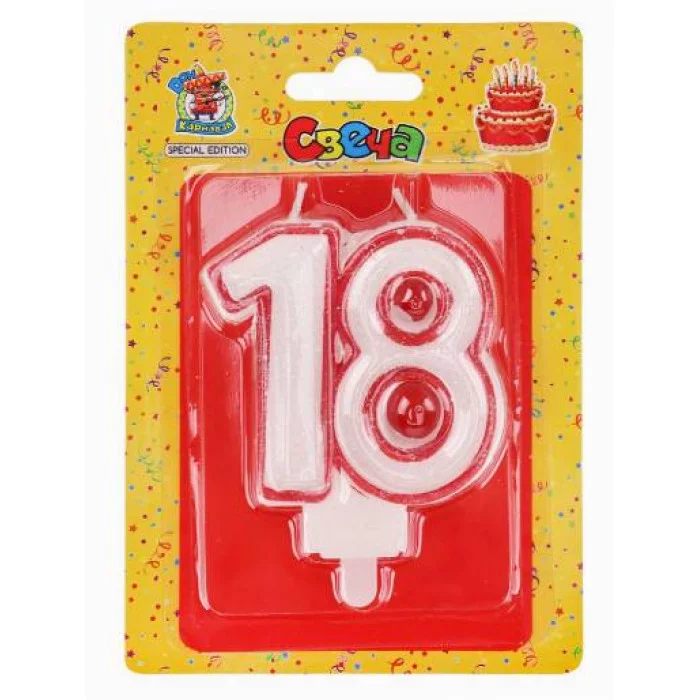 Свеча для торта. Значимые даты. Цифра 18 красная С-2475