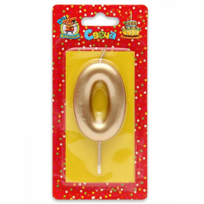 Свеча для торта Золотая Цифра 0 С-1798