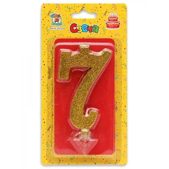 Свеча для торта Золотой глиттер (большая) Цифра 7 С-1899 466-5-305-41899-6
