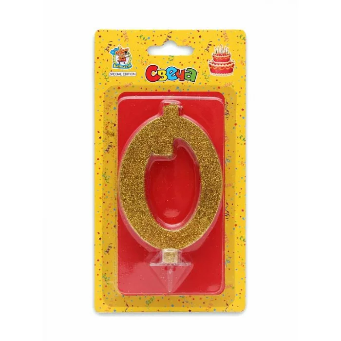 Свеча для торта Золотой глиттер (малая) Цифра 0 С-1818