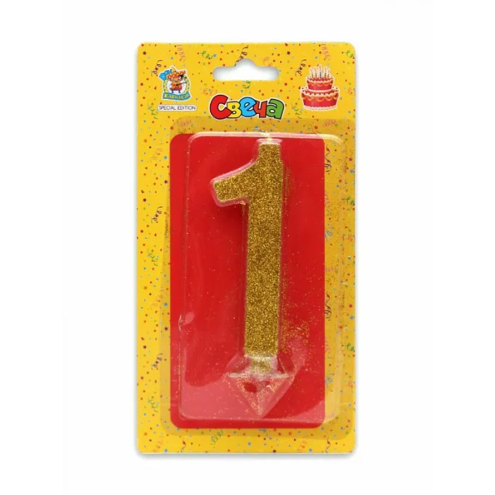 Свеча для торта Золотой глиттер (малая) Цифра 1 С-1819