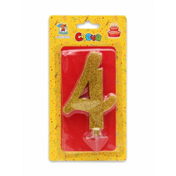 Свеча для торта Золотой глиттер (малая) Цифра 4 С-1822