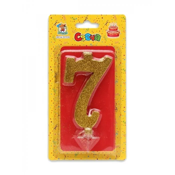 Свеча для торта Золотой глиттер (малая) Цифра 7 С-1825 466-5-305-41825-5