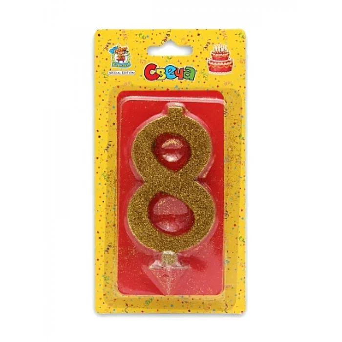Свеча для торта Золотой глиттер (малая) Цифра 8 С-1826 466-5-305-41826-2