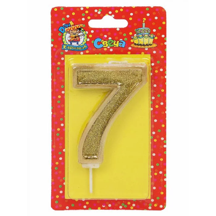 Свеча для торта Золотой глиттер с окантовкой Цифра 7 С-5981