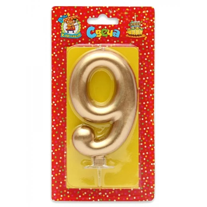 Свеча для торта Золотой металлик (большая) Цифра 9 С-1871 466-5-305-41871-2