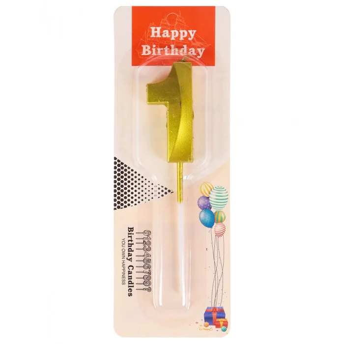 Свеча для торта Золотой стиль Цифра 1 С-2964