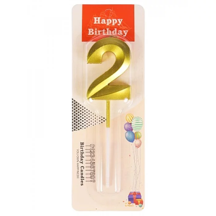 Свеча для торта Золотой стиль Цифра 2 С-2965