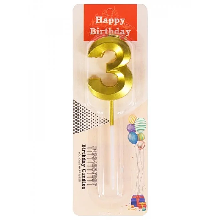 Свеча для торта Золотой стиль Цифра 3 С-2966 461-0-144-82966-3