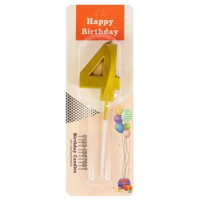 Свеча для торта Золотой стиль Цифра 4 С-2967