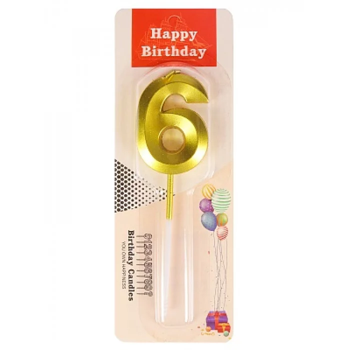Свеча для торта Золотой стиль Цифра 6 С-2969 461-0-144-82969-4