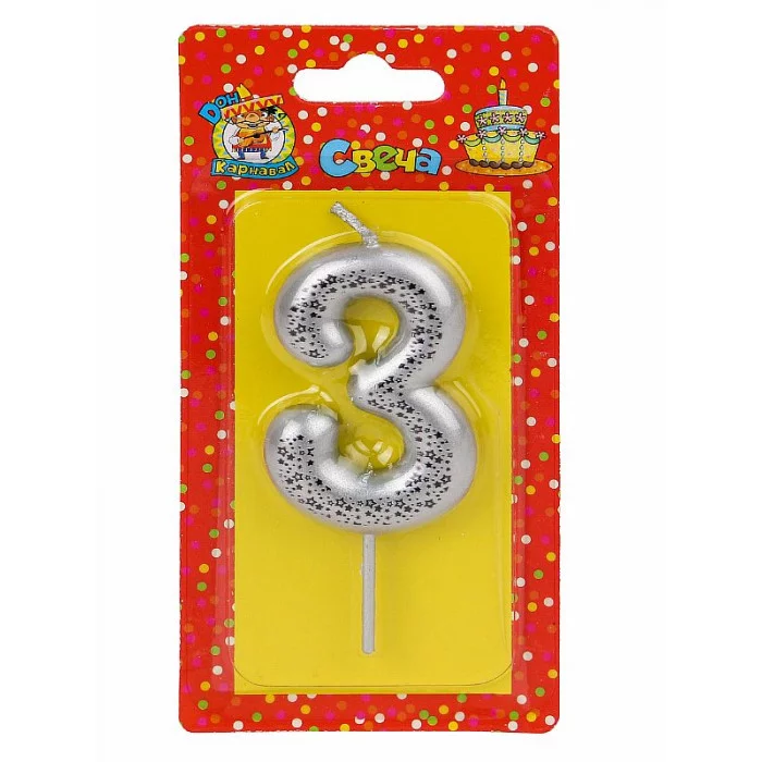 Свеча для торта Звёздочки, серебряная Цифра 3 С-5997
