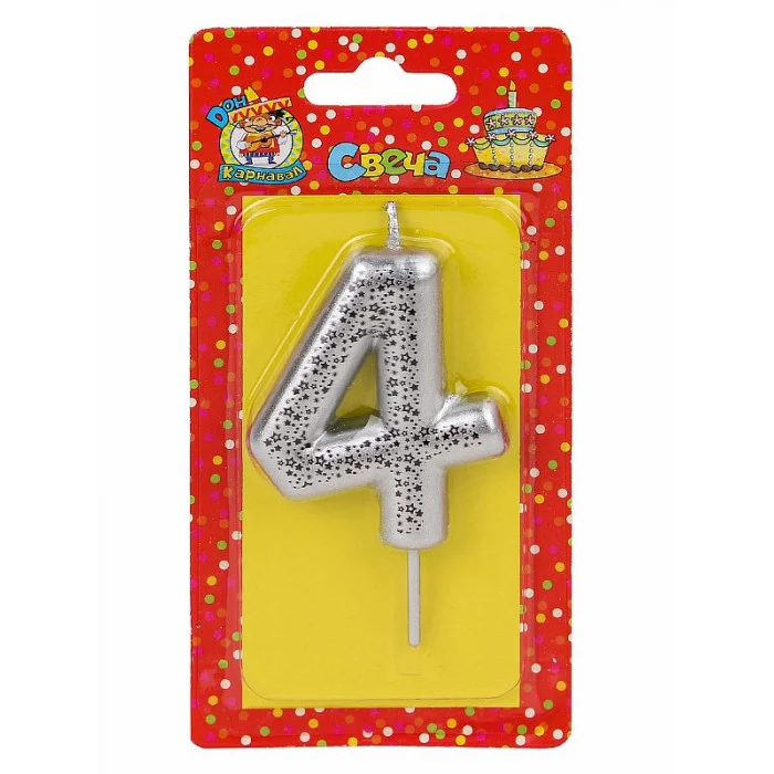 Свеча для торта Звёздочки, серебряная Цифра 4 С-5998