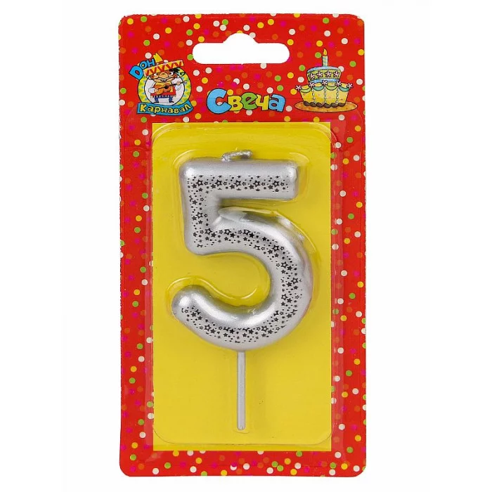 Свеча для торта Звёздочки, серебряная Цифра 5 С-5999