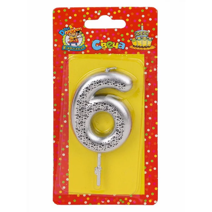 Свеча для торта Звёздочки, серебряная Цифра 6 С-6000