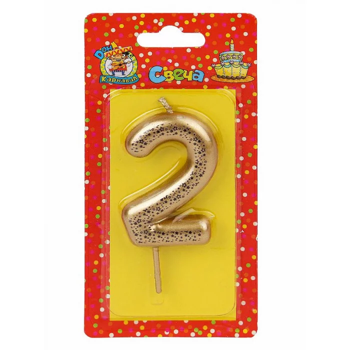 Свеча для торта Звёздочки, золотая Цифра 2 С-5986