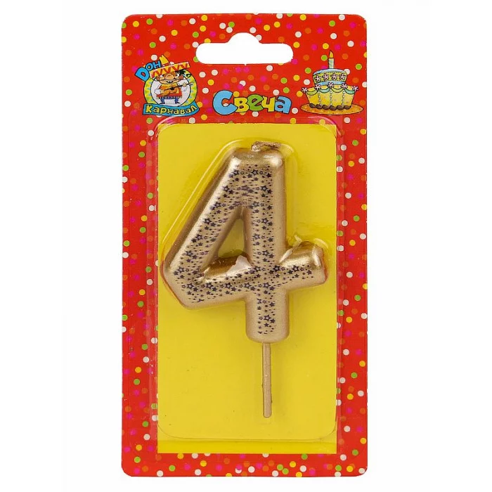 Свеча для торта Звёздочки, золотая Цифра 4 С-5988