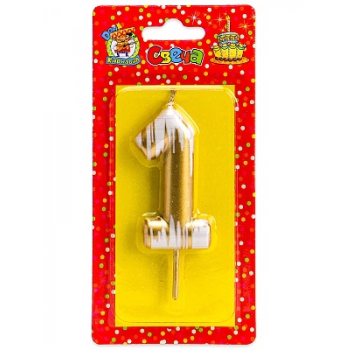 Свеча для торта.Шебби шик, Цифра 1, золотая С-2510