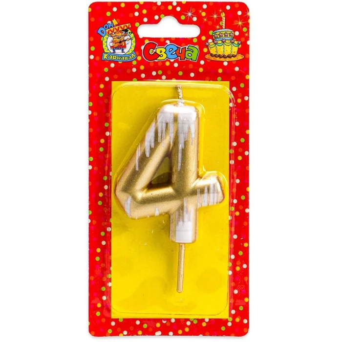 Свеча для торта.Шебби шик, Цифра 4, золотая С-2513