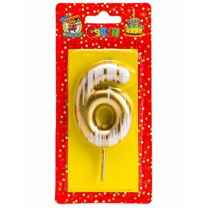 Свеча для торта.Шебби шик, Цифра 6, золотая С-2515