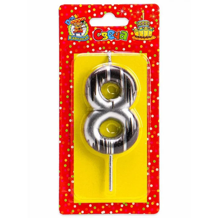 Свеча-цифра не просто украсит праздничный торт, а сделает его по-настоящему особенным и выделяющимся! Кроме того, свеча станет ярким и оригинальным атрибутом на семейном фото и создаст нужную атмосферу! Красивая и стильная, она идеально подойдёт для годовщины свадьбы, детского праздника или дня рождения взрослого. Свеча-цифра надёжно крепится и хорошо держится на угощении, отличается высоким качеством и безопасностью материала, долго горит и не растрескивается. Цвет: серебряный.