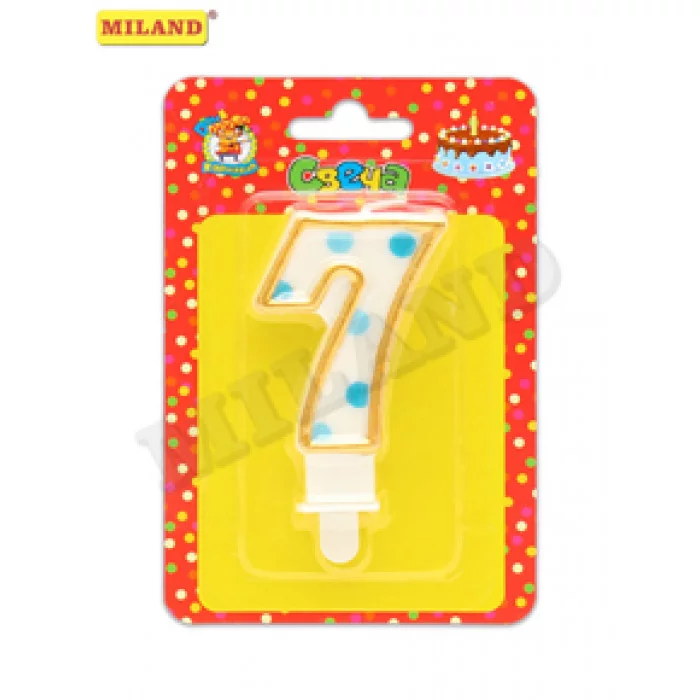 Свеча на торт "Цифра 7" Синий горошек. 9см С-2646 Миленд /1 /0 /0 /1 305890