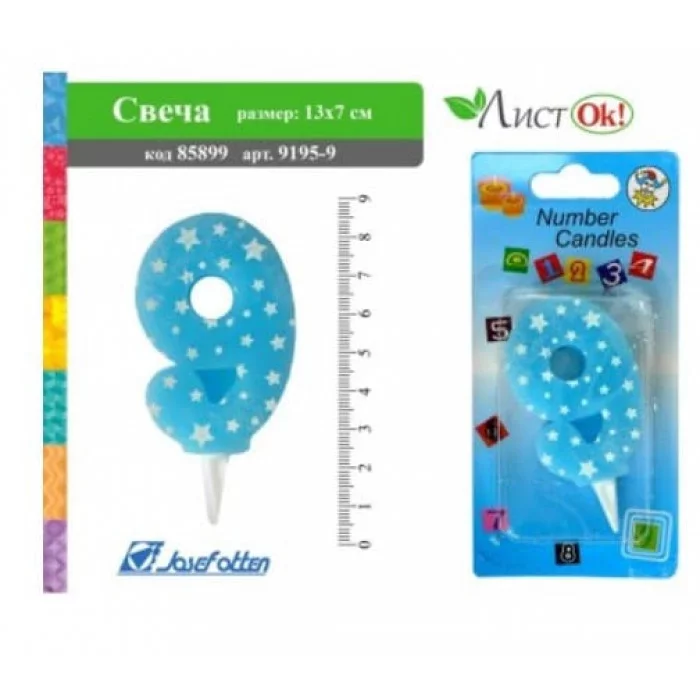 Свеча на торт "Цифра 9" звезды, 13*7 см, асс. 9195-9 синий J.Otten /1 /12 /0 /900 85899