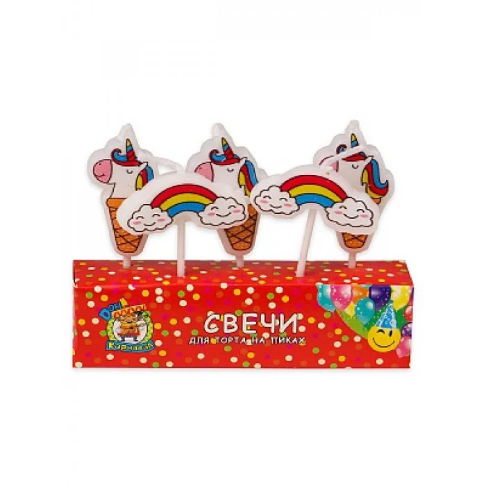 Свечи для торта на пиках Единорог и радуга, 5 шт. С-6018