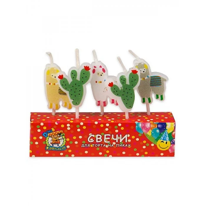 Свечи для торта на пиках Ламы и кактусы, 5 шт. С-6244 466-5-307-36244-0
