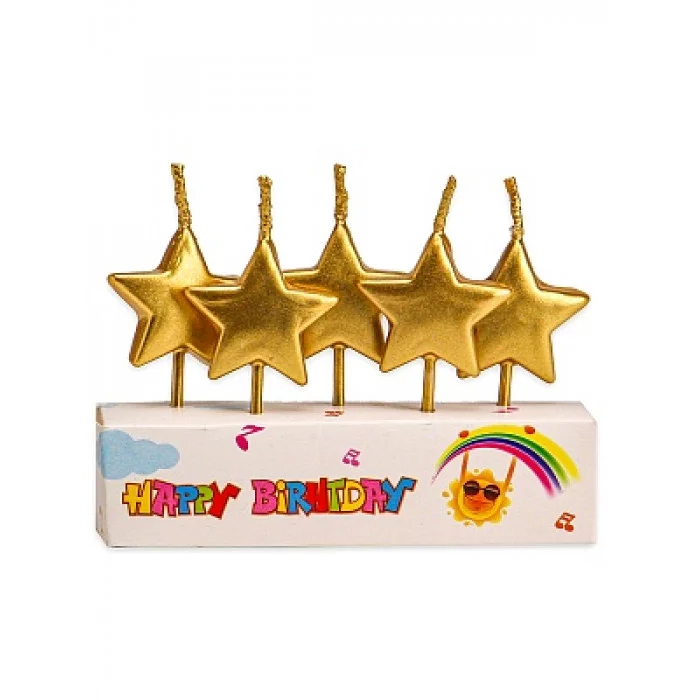 Свечи для торта на пиках. Золотые звездочки 5 шт. С-2542
