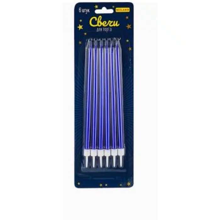 Свечи для торта на подставках "Торжество" 0.5*13 + 2см 6шт синие С-2026