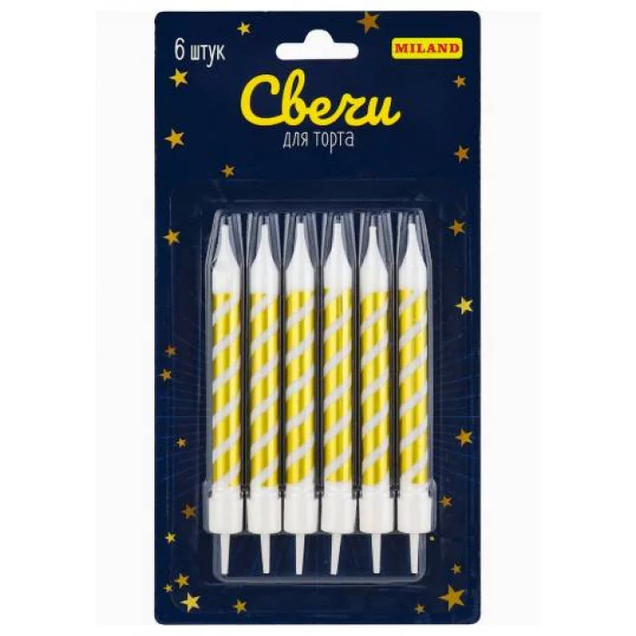 Свечи для торта на подставках "Золотистые полосы" 0.7*7 + 2см 6шт С-2013