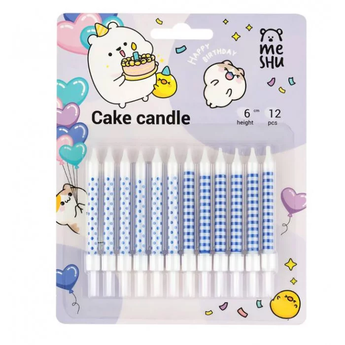 Свечи для торта с держателями MESHU "Blue pattern", ассорти, 6см, 12шт 364814