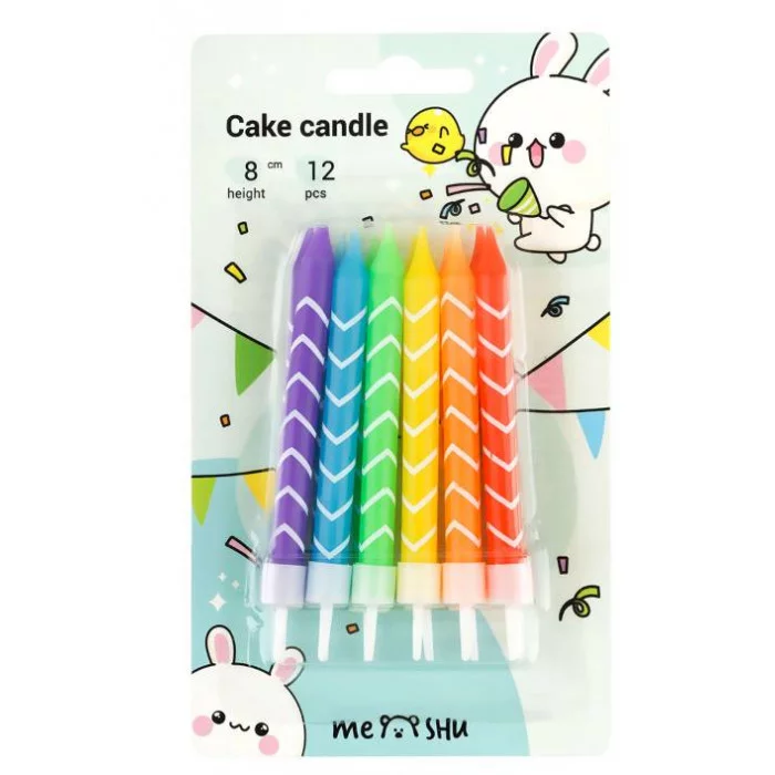 Свечи для торта с держателями MESHU "Bright", ассорти, 8см, 12шт 364815