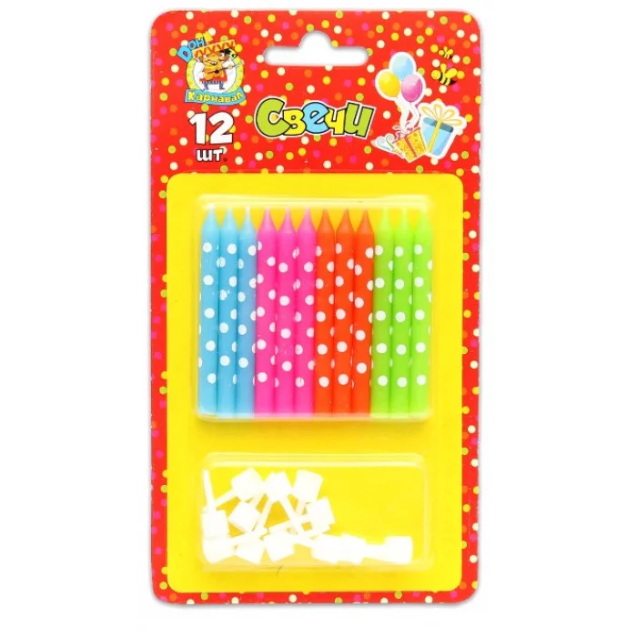 Свечи для торта с подставками. Озорные точки 12шт. С-0456