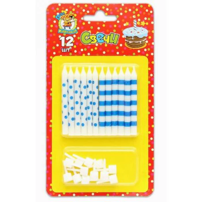 Свечи для торта с подставками. Точки и полосы голубые 12шт. С-0458