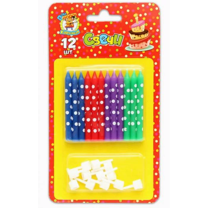 Свечи для торта с подставками. Весёлые точки 12шт. С-0455