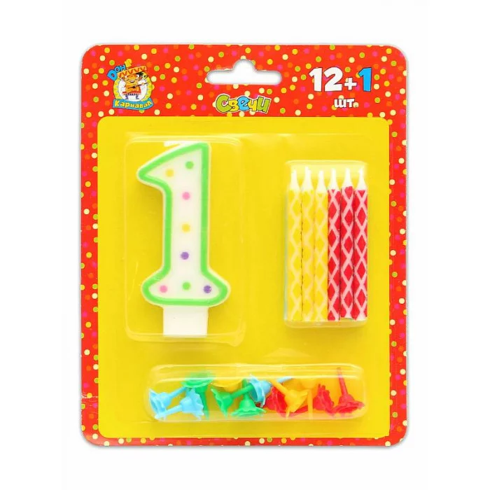 Свечи не просто украсят праздничный торт, а сделают его по-настоящему особенным и выделяющимся! Кроме того, свечи станут ярким и оригинальным атрибутом на семейном фото и создадут нужную атмосферу! Красивые и стильные, они идеально подойдут для годовщины свадьбы, детского праздника или дня рождения взрослого. Свечи надёжно крепятся и хорошо держатся на угощении, отличаются высоким качеством и безопасностью материала, долго горят и не растрескиваются. Количество: 12 шт. + свеча-цифра "1".