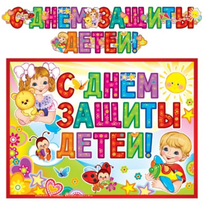 ГР-10548 Гирлянда с плакатом А3 (2, 3 м) С Днем защиты детей! (с блестками в лаке), 4630112010923