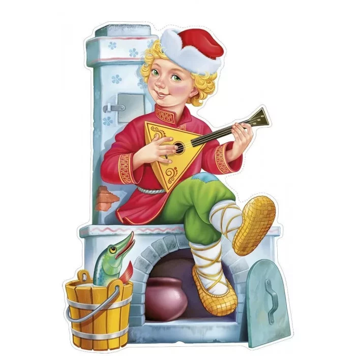 Вырубной двусторонний плакат сказочный персонаж "Емеля" для оформления помещений в школах и детских садах. Может использоваться в качестве настенного украшения, декорации к выступлению или для проведения уроков.