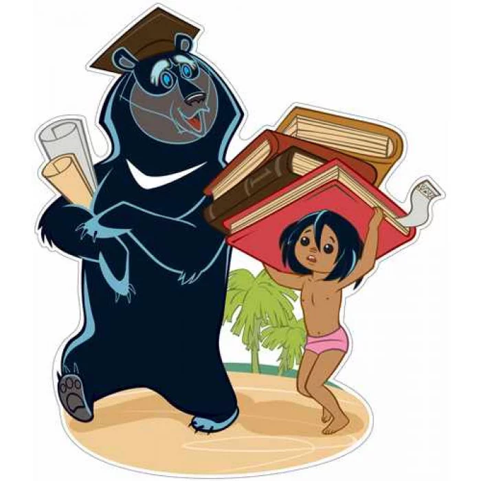 Плакат вырубной А3. Маугли и Балу с книгами из мультфильма Ф2-12606