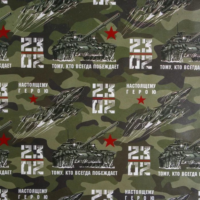 Бумага упаковочная глянцевая «Хаки 23 февраля», 70 × 100 см 5351684