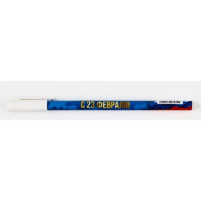 Ручка пластик пиши-стирай с колпачком С Днём Защитника Отечества, синяя паста, 5 мм 10616462