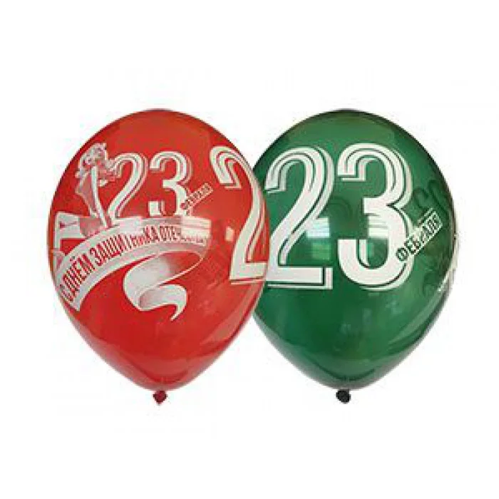 Шары с четырехсторонним - круговая печать, шелкографическим рисунком - поздравление с 23 Февраля.