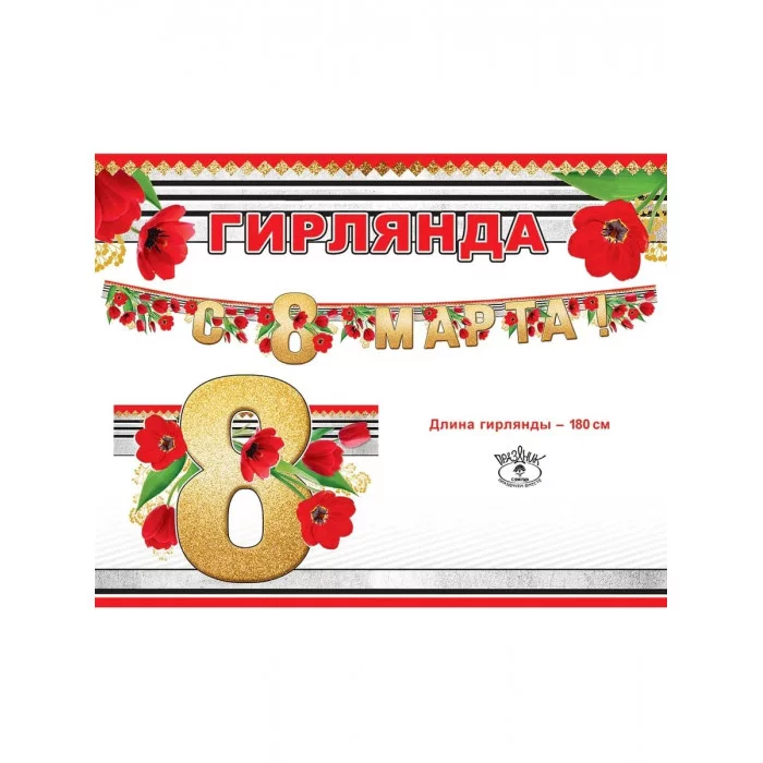 Гирлянда-растяжка "праздник" с 8 марта 180 см 00339