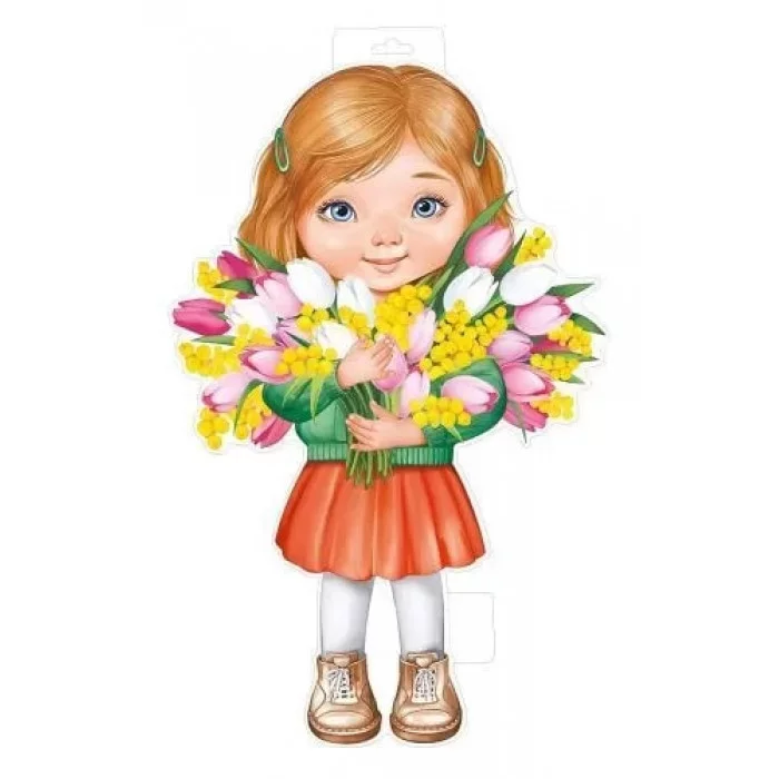 Плакат вырубной А3 И933 "Империя Поздравлений" Девочка с буктом тюльпанов 59329