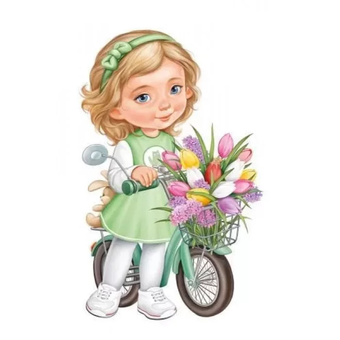Плакат вырубной А3 И933 Империя Поздравлений Девочка с велосипелом и корзиной тюльпанов 59331