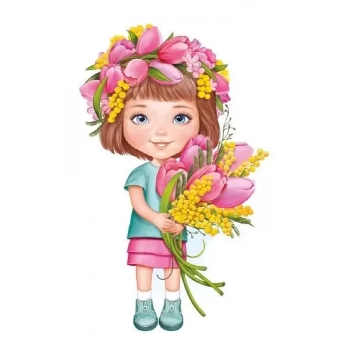 Плакат вырубной А3 И933 Империя Поздравлений девочка в венке с букетом тюльпанов 59335