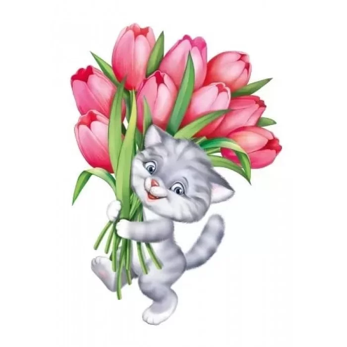 Плакат вырубной А3 И933 Империя Поздравлений кот с букетом тюльпанов 59342