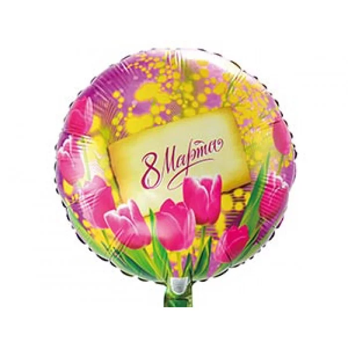 Шар К 18 РУС 8 МАРТА Тюльпаны и мимозы (цена за 1шт.) 1202-2528 11\1601